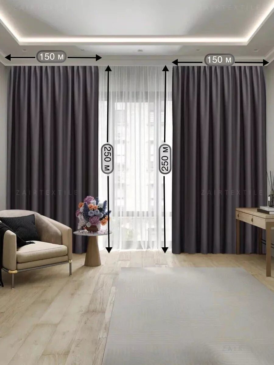 Шторы портьеры блэкаут комплект 150х250 (2шт.) графит информация: