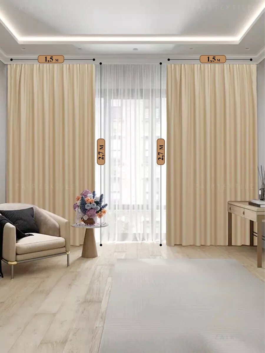 Шторы портьеры Блэкаут комплект 150х270 (2 шт.) бежевый информация: