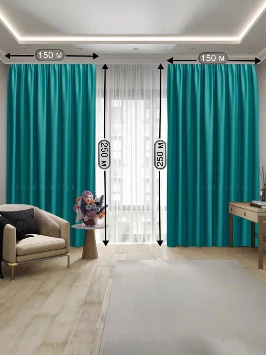 Шторы портьеры блэкаут бежевые комплект 150х250 (2шт.) бирюзовый информация: