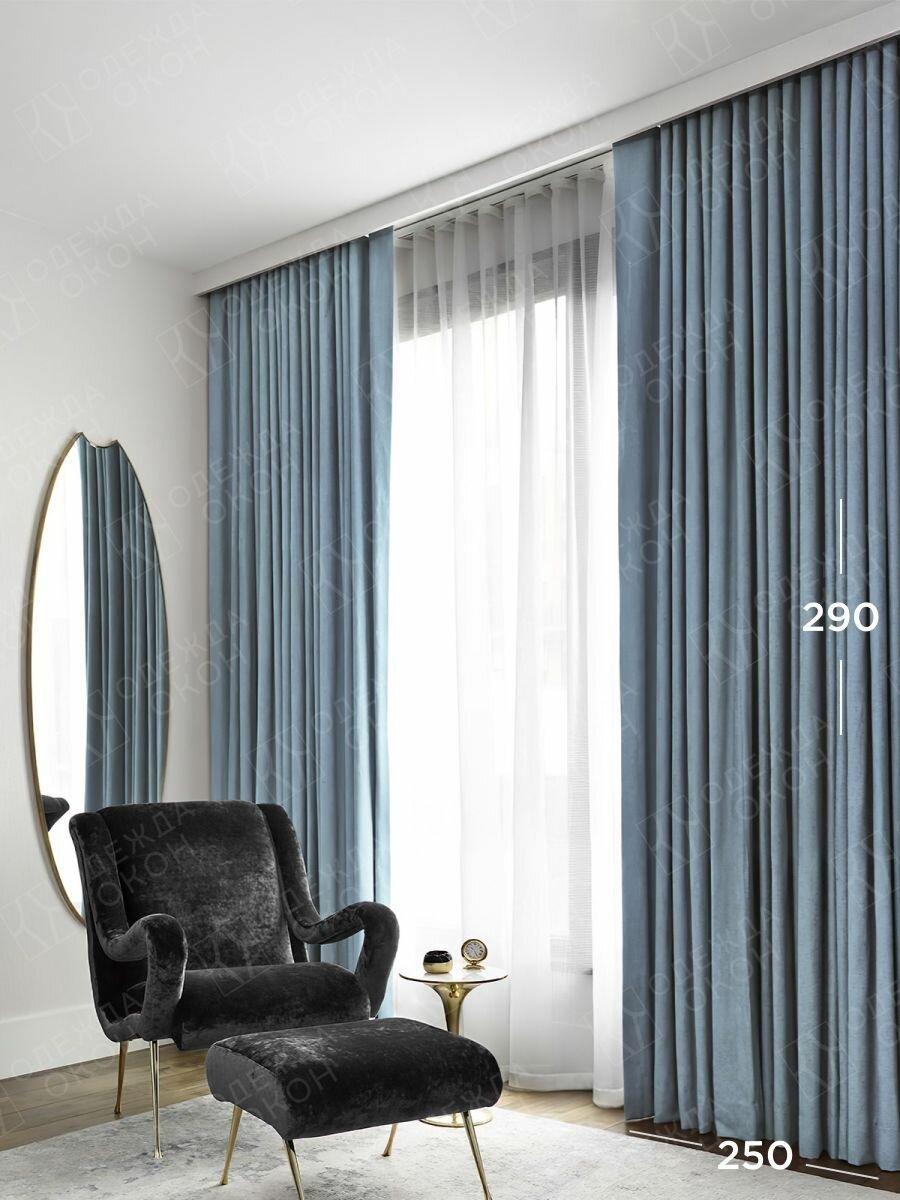 Отзывы на Шторы для комнаты, шторы для гостиной комплект Канвас L, 250 х 290 см ,серо-голубой, синий