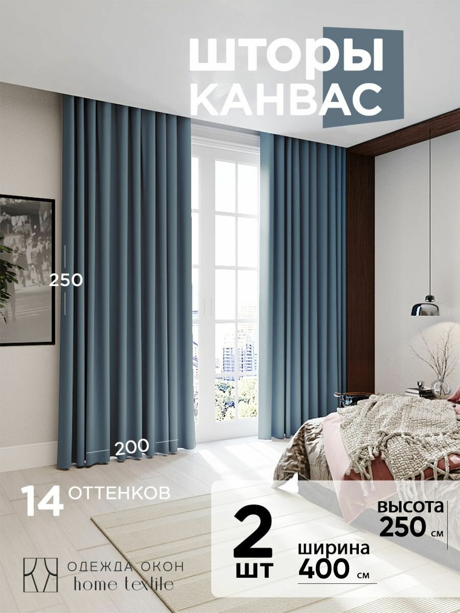 Отзывы на Шторы для комнаты, шторы для гостиной комплект Канвас М, 200 х 250 см ,серо-голубой, синий