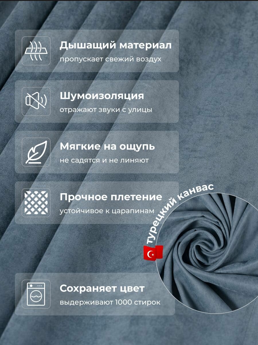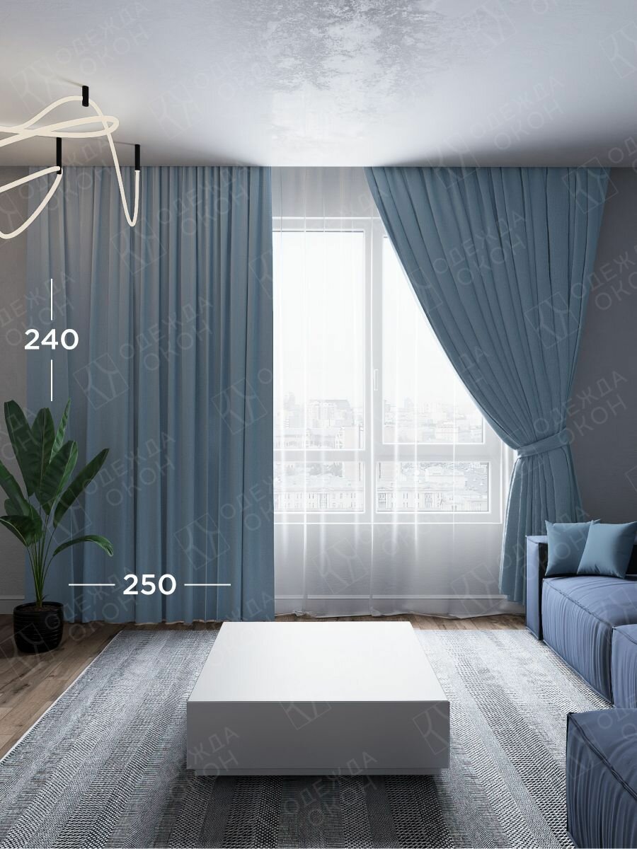 Отзывы на Шторы для комнаты, шторы для гостиной комплект Канвас L, 250 х 240 см ,серо-голубой, синий