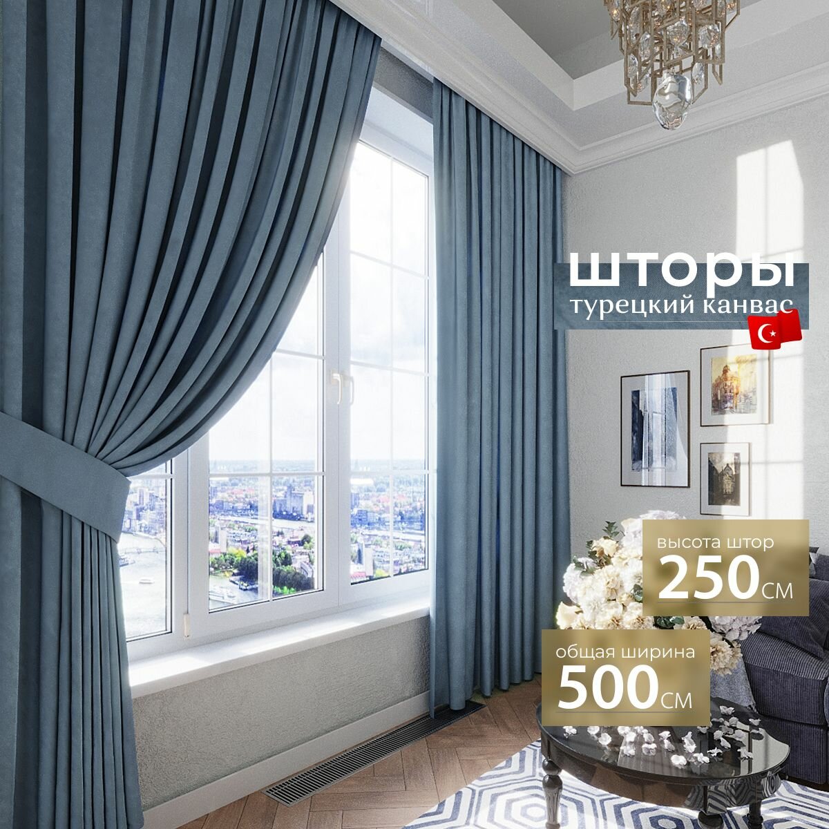 Шторы для комнаты, шторы для гостиной комплект Канвас L, 250 х 240 см ,серо-голубой, синий 8 000 ₽