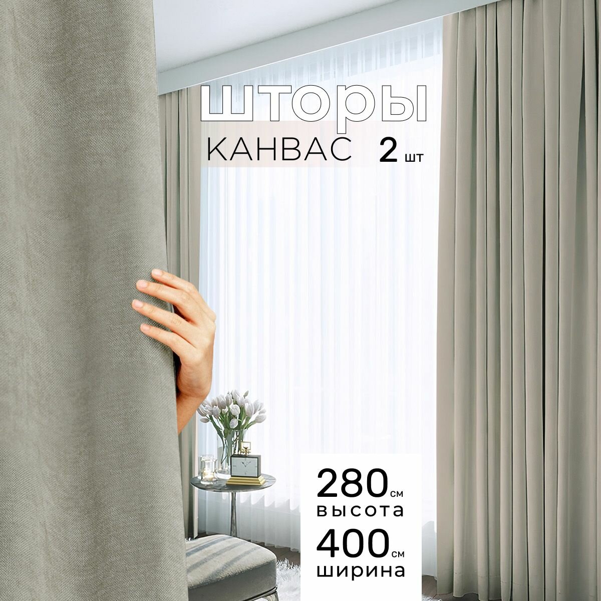 Отзывы на Шторы для комнаты, шторы для гостиной комплект Канвас М, 200 х 280 см , бежевый