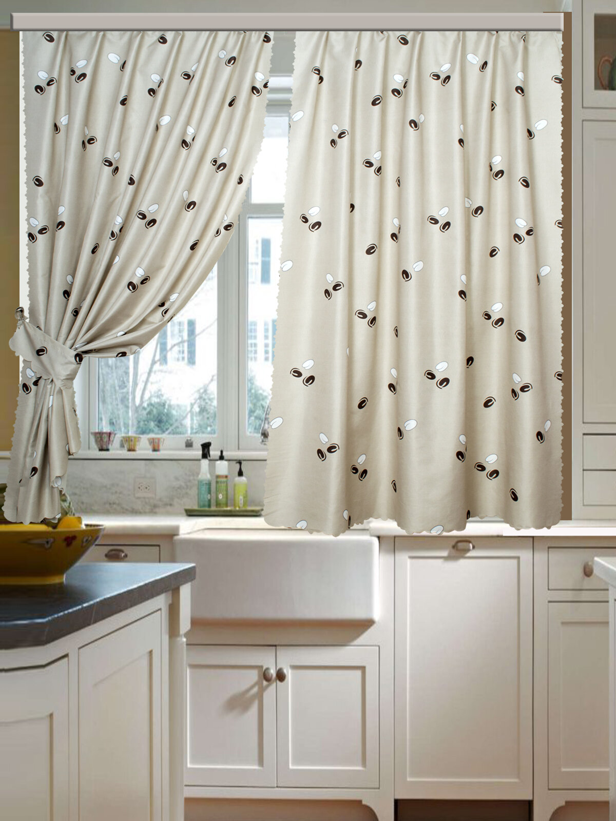 10 цен на Шторы для кухни короткие комплект 2 шт Илона кофейные зерна