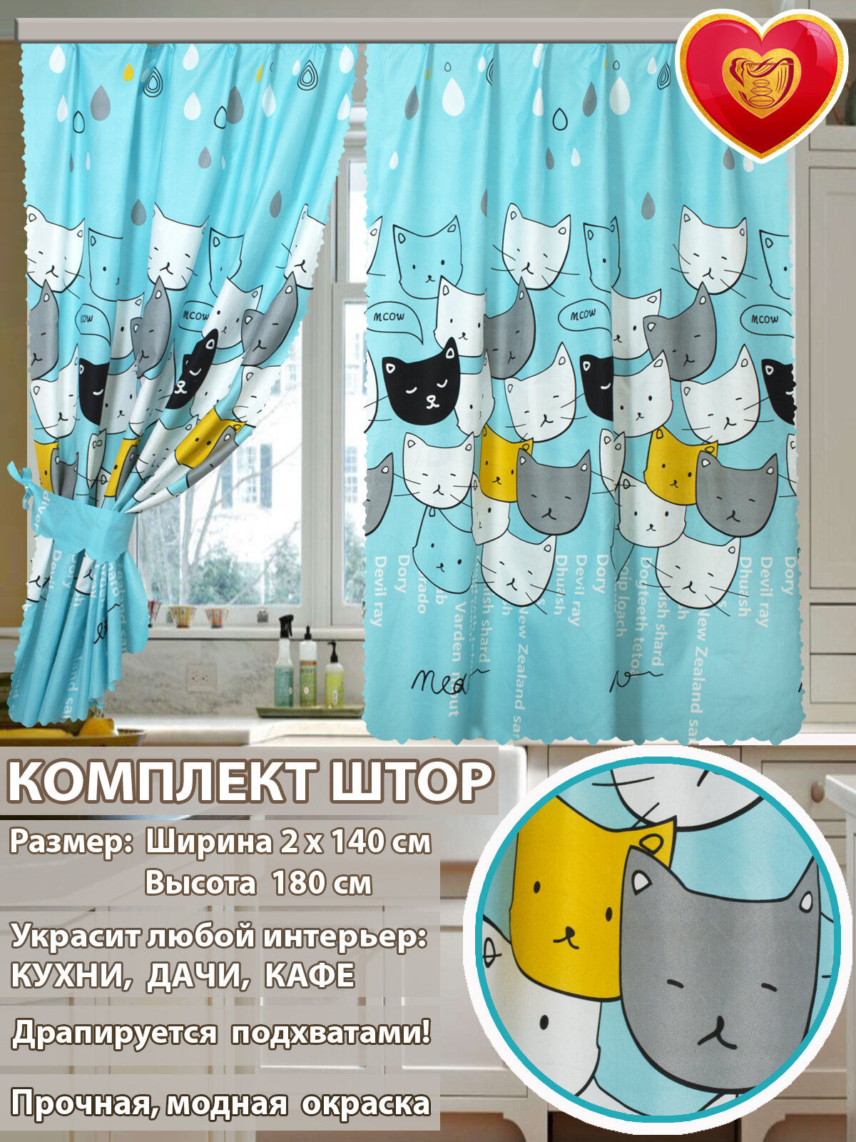 Шторы для кухни короткие комплект 2 шт Илона котики информация: