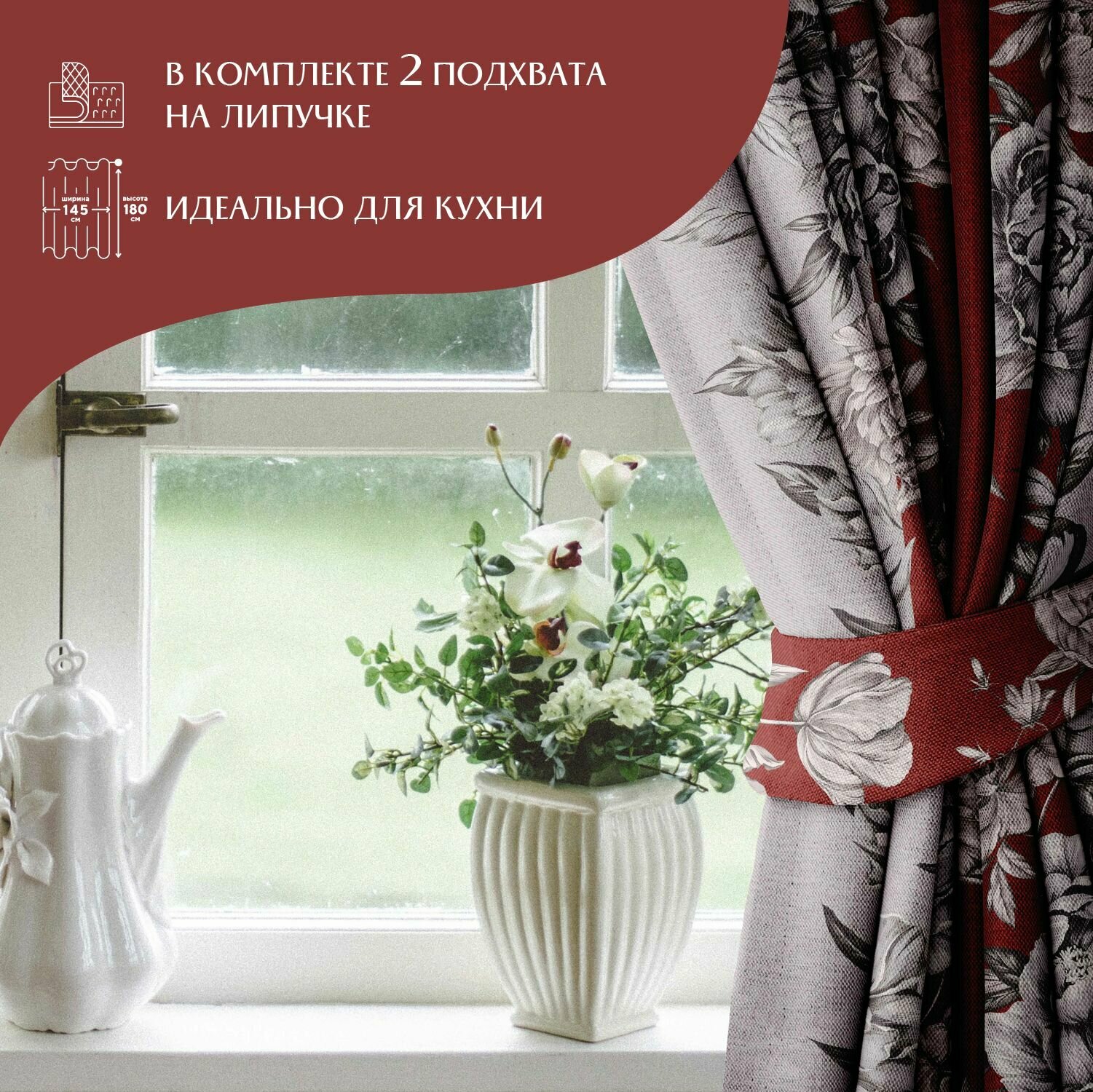 Комплект штор с подхватом рогожка 145х180 (2 шт) "Mia Cara" рис 14056-1 Душистый пион 1 253 ₽