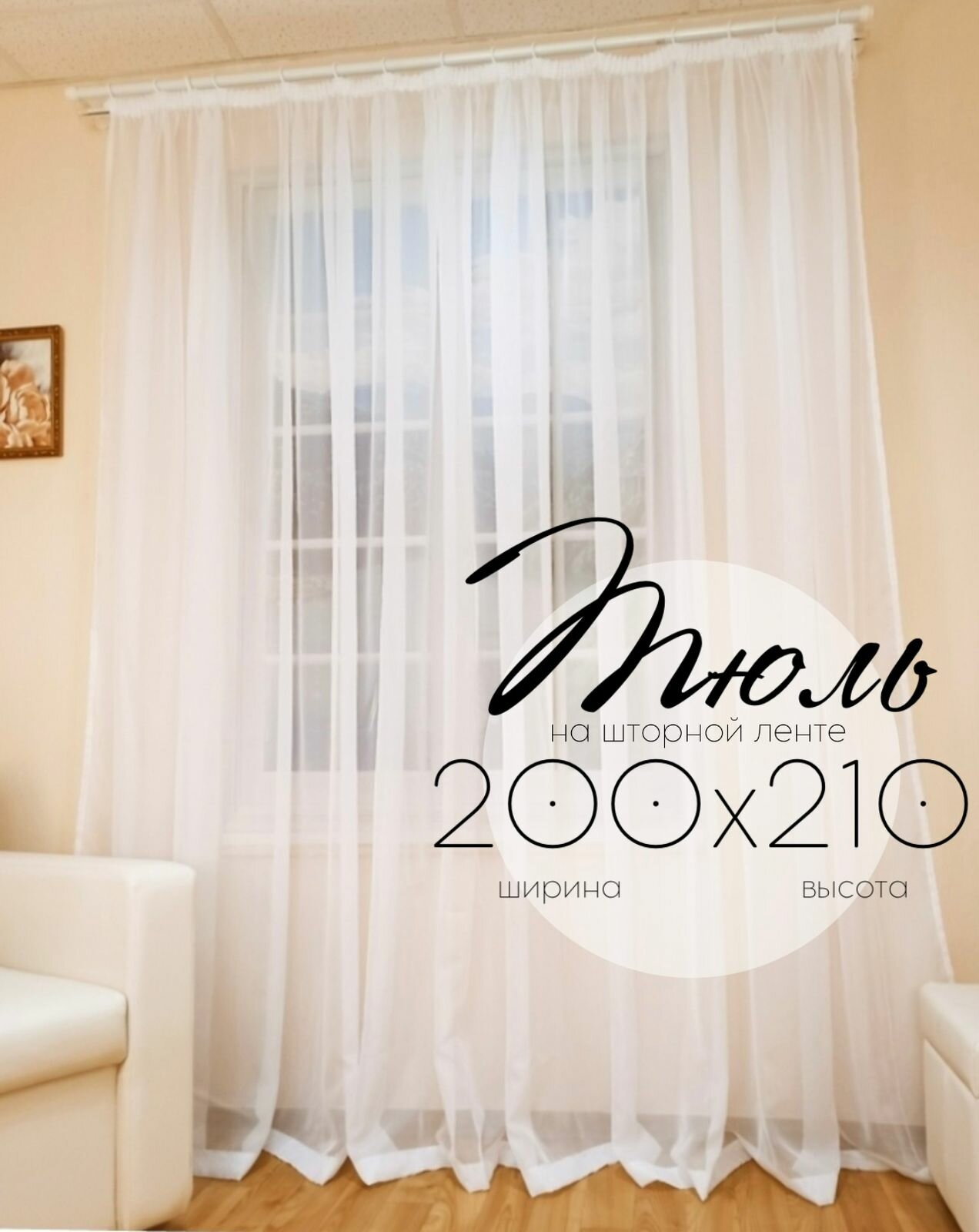 Тюль вуаль в спальню и гостиную длинная 200х240 см белая