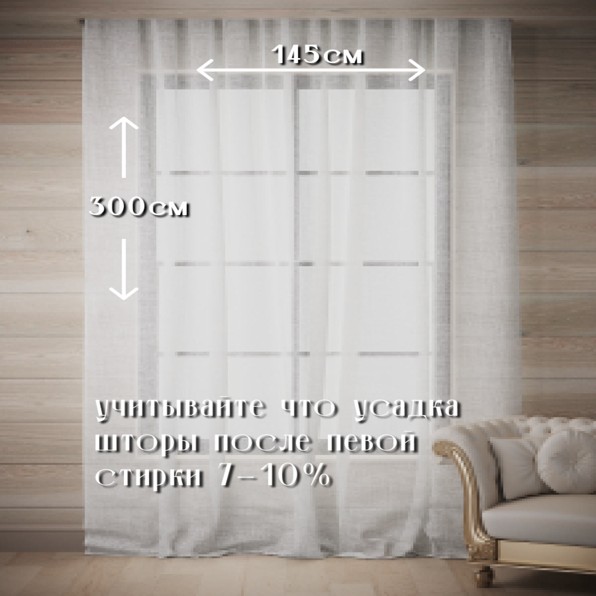 Тюль Лен Хлопок ПолуЛен 100% натуральный, Ш*В - 145*300см, белый информация: