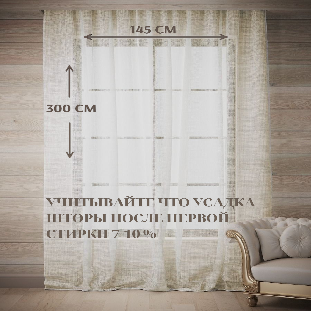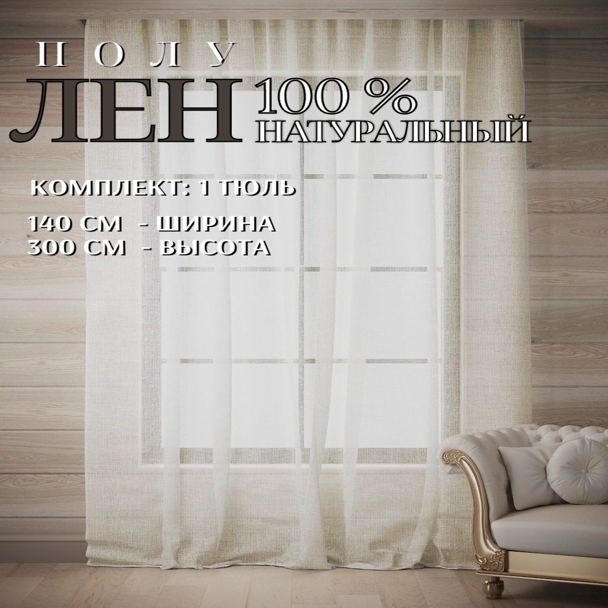 Отзывы на Тюль Лен Хлопок ПолуЛен 100% натуральный, Ш*В - 145*300см, бежевый