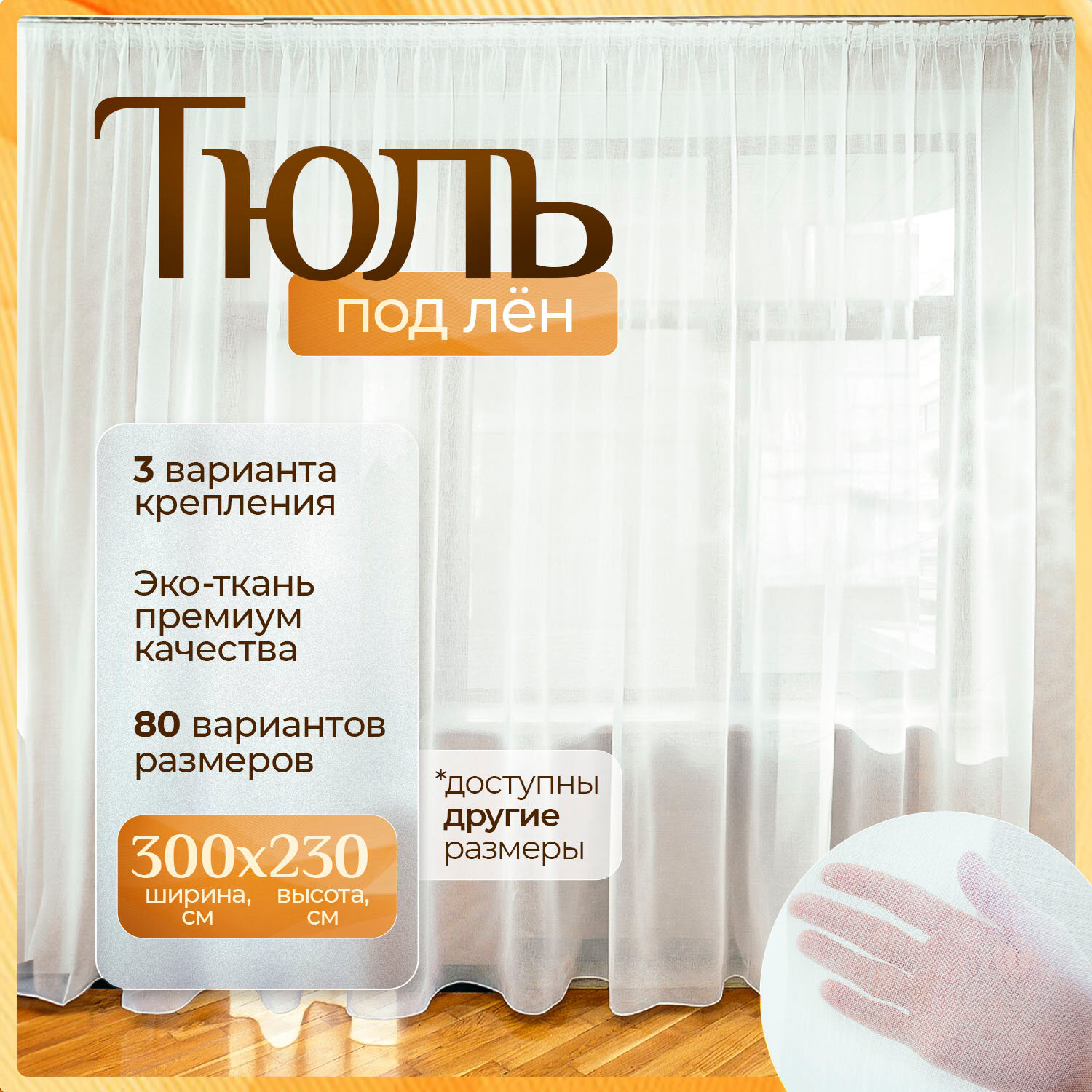 10 цен на Тюль под лен белая 300х230 см с утяжелителем длинная для гостиной, спальни, кухни