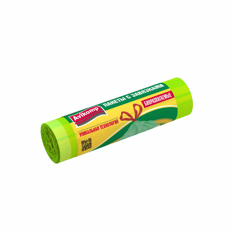 Мешки для мусора 60л с завязками биоразлагаемые Avikomp, 10 шт, зеленый информация: