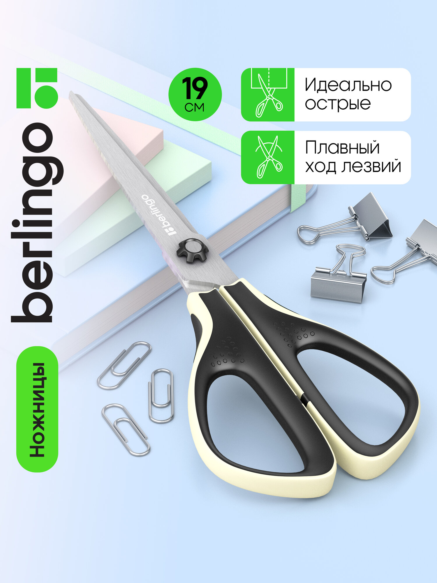 10 цен на Ножницы Berlingo "Easycut 300", 19см, белые, мягкие вставки