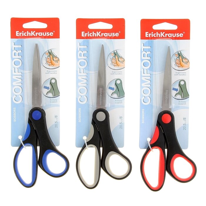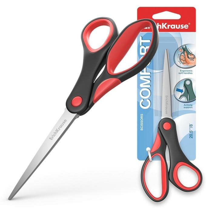 Отзывы на Ножницы ErichKrause Comfort, 20.5 см, ручки с противоскользящими резиновыми вставками, микс