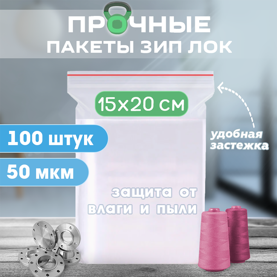 10 цен на Зип пакеты 15х20см прочные толщина 50 мкм, 100 штук