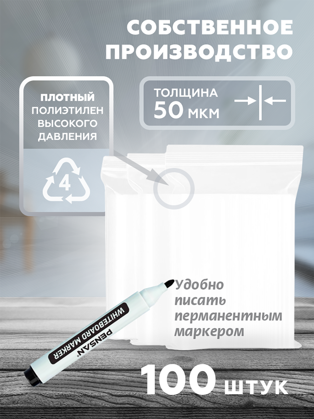 Зип пакеты 10х10см прочные толщина 50 мкм, 100 штук 419 ₽