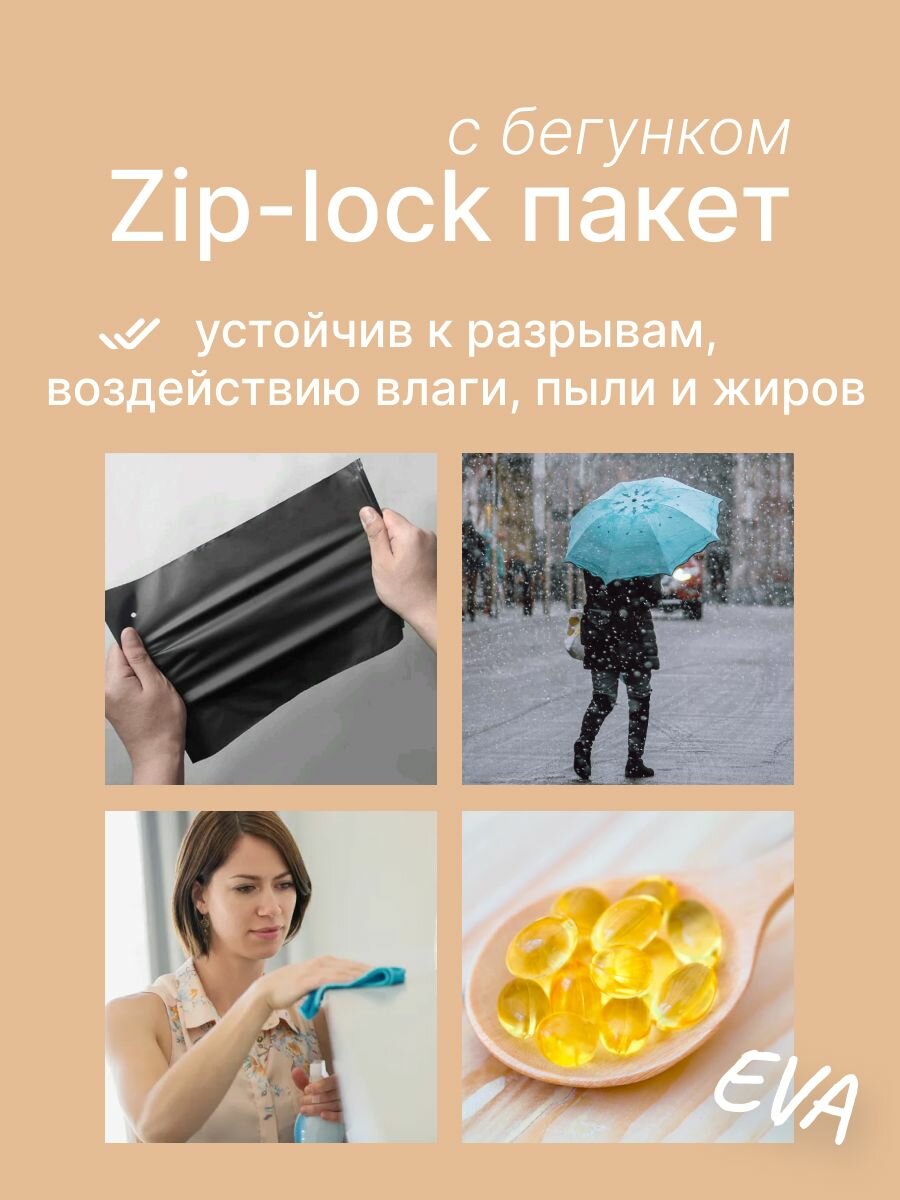 Фасовочный зип-лок пакет EVA с бегунком 20х25 см., 80 мкм., черный, 100 штук информация: