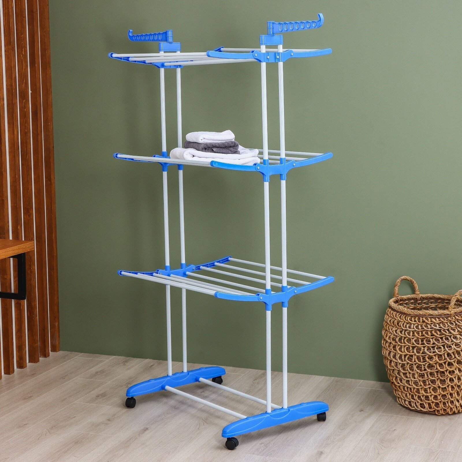 10 цен на Сушилка для белья Доляна напольная, 3 уровня, 75х64х170 см, 16 м, на колесах, металлическая (889355)