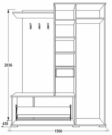 | Особенности | с местом для сидения, со штангой для вешалок, шкаф с зеркалом |