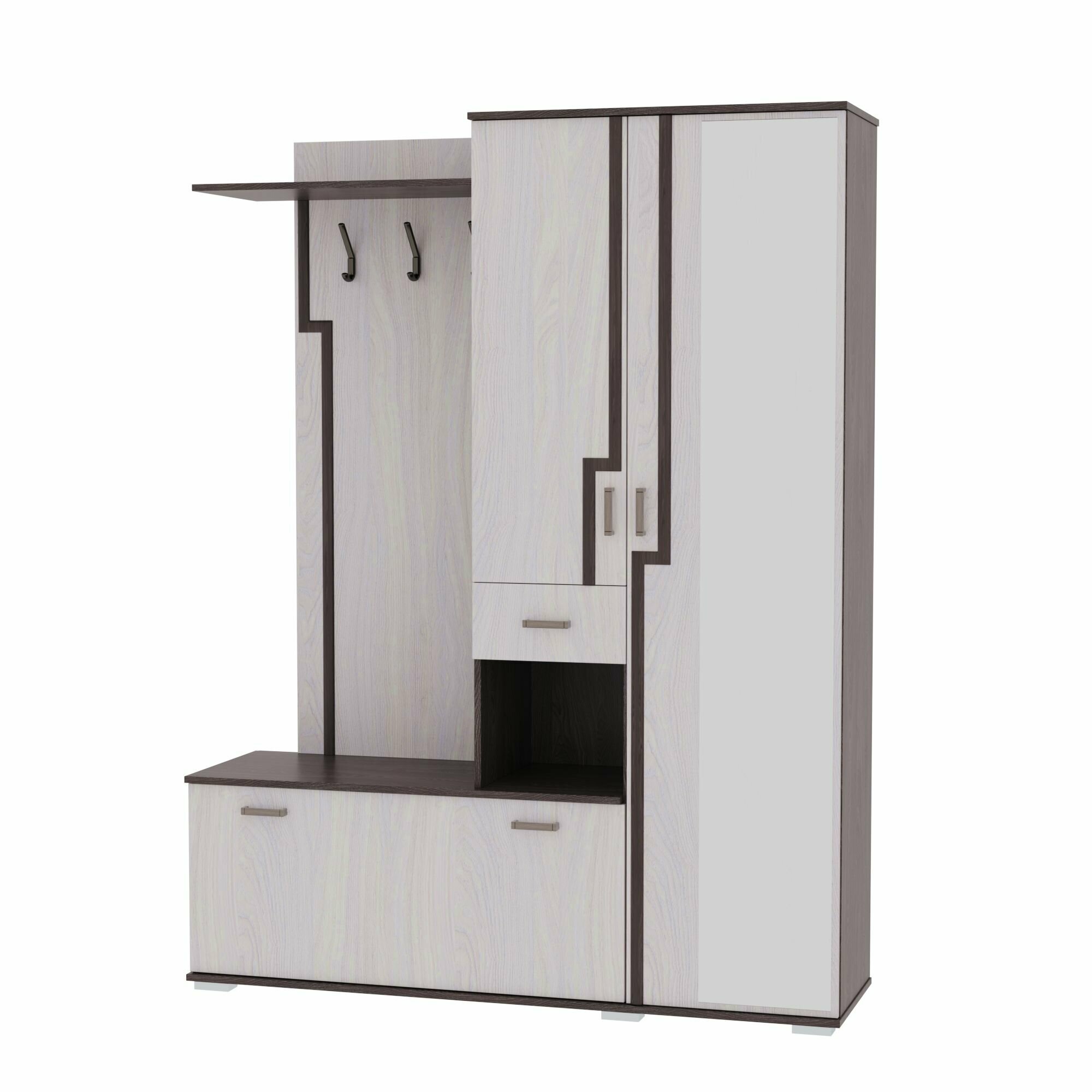 Прихожая комплект САША-6 (левая) от Фант-Мебель, с зеркалом, с обувницей, шкафом и ящиками, 156x203,6x43 см. Венге/Млечный дуб