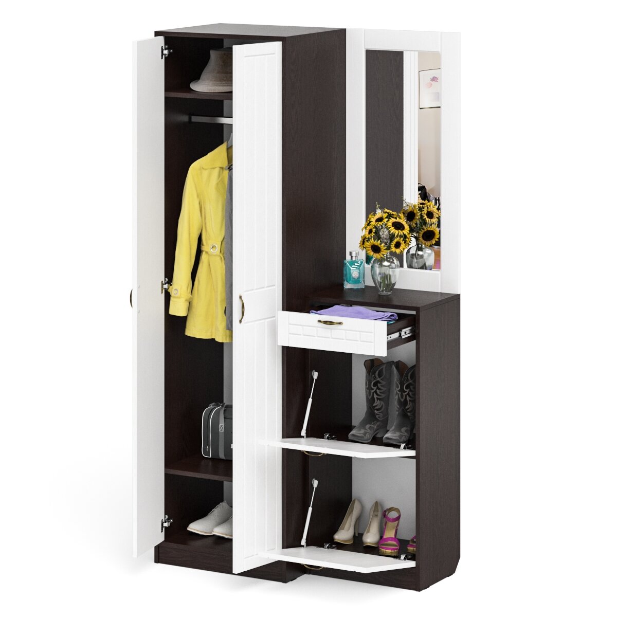 10 цен на Зеркало для прихожей с обувницей и шкафом П-6, цвет венге/фасады МДФ белое дерево фрезеровка прованс, ШхГхВ 110х50х210 см.