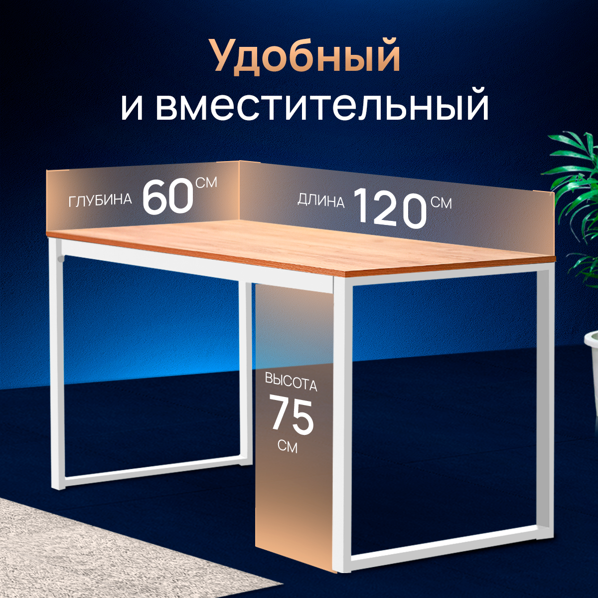 Cтол Birman письменный, компьютерный, кухонный, обеденный, игровой, лофт 120х60, дуб/белый каркас информация: