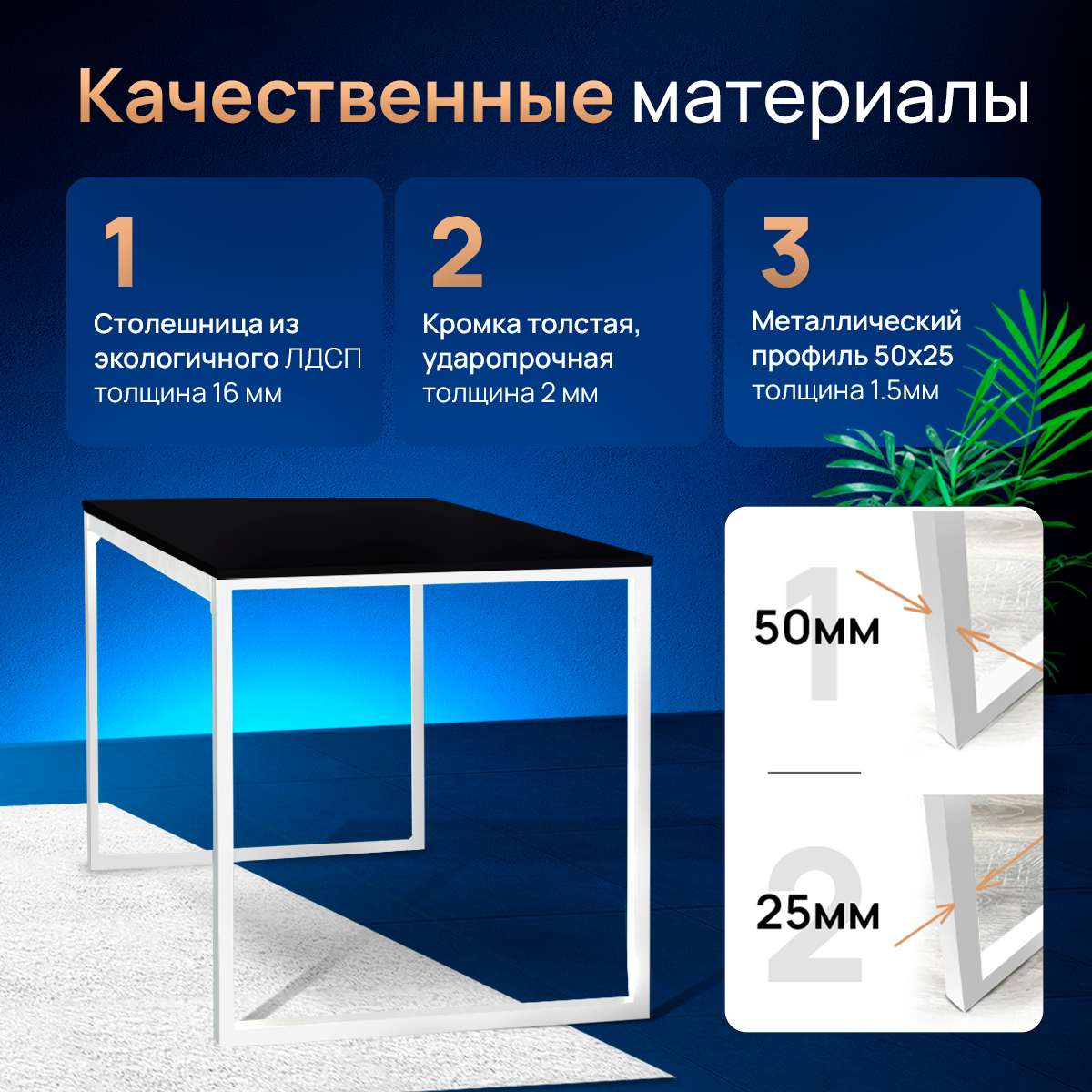 10 цен на Cтол Birman письменный, компьютерный, кухонный, обеденный, игровой, лофт 120х60, черный/белый каркас