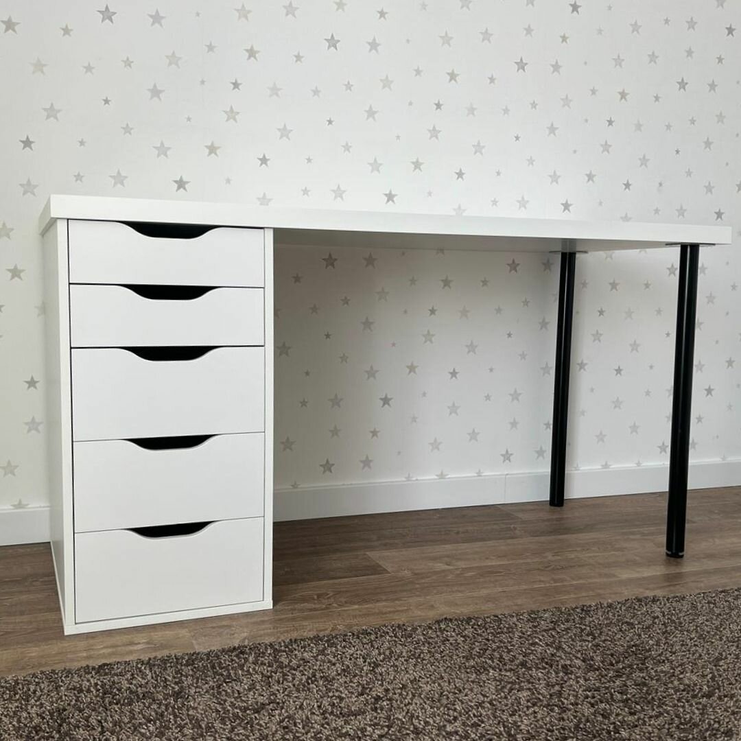 Отзывы на Стол письменный, компьютерный с тумбой скива, 140х60х73,7 см, белый/черный