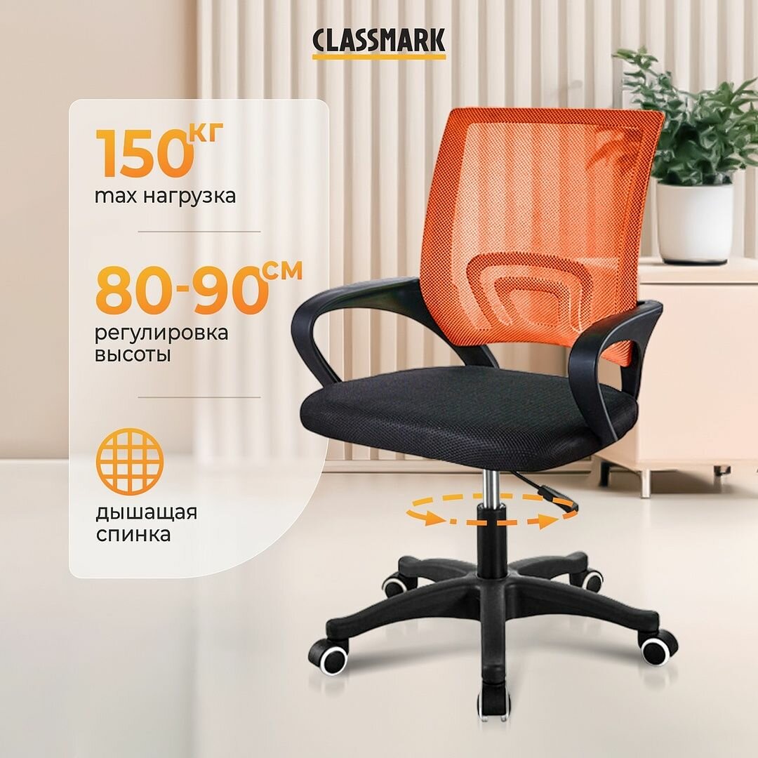 Кресло компьютерное Classmark офисный стул на колесиках, для школьника и взрослого, нагрузка до 150 кг, оранжевый информация:
