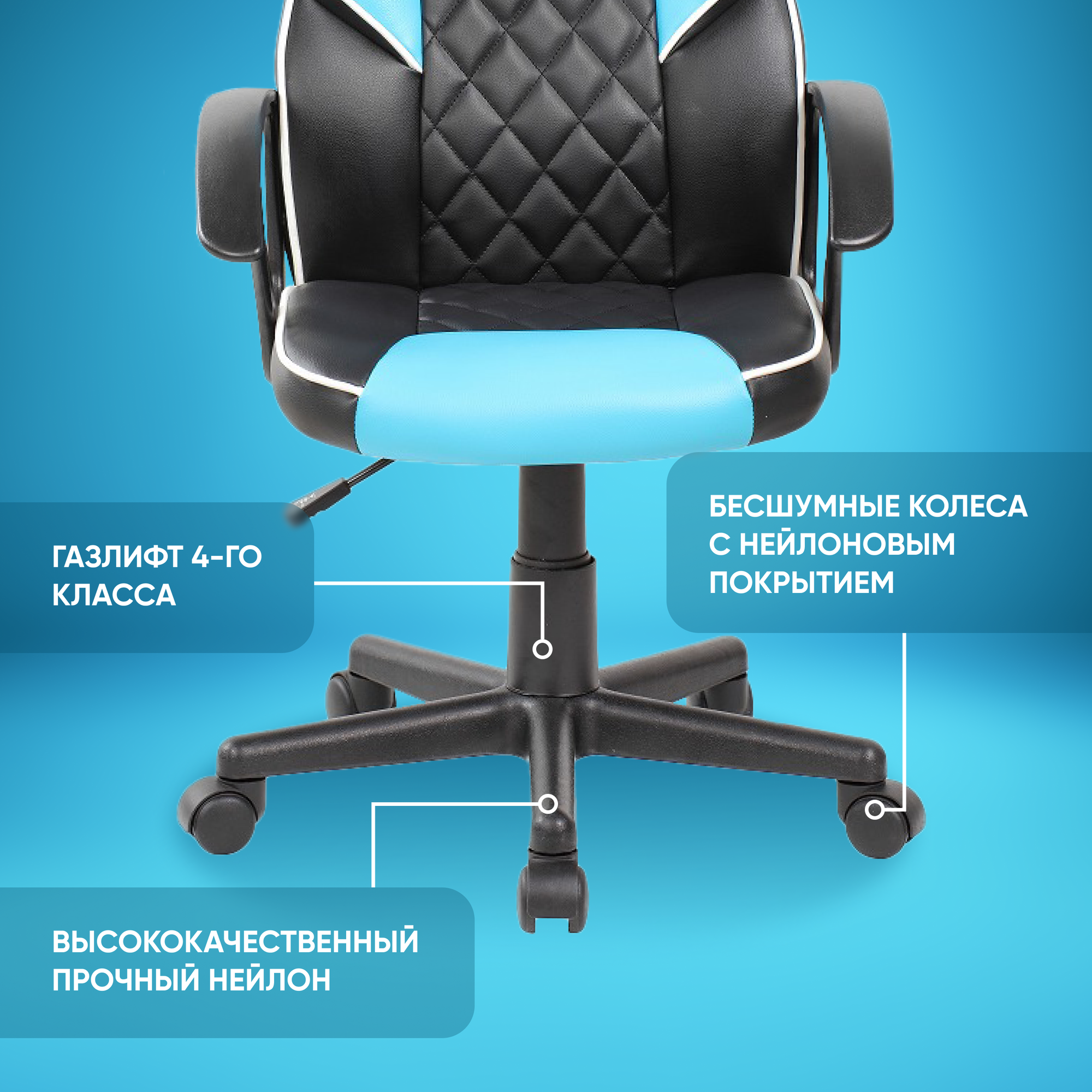 Игровое компьютерное кресло для детей и подростков CYBERTRACER черно-голубое информация: