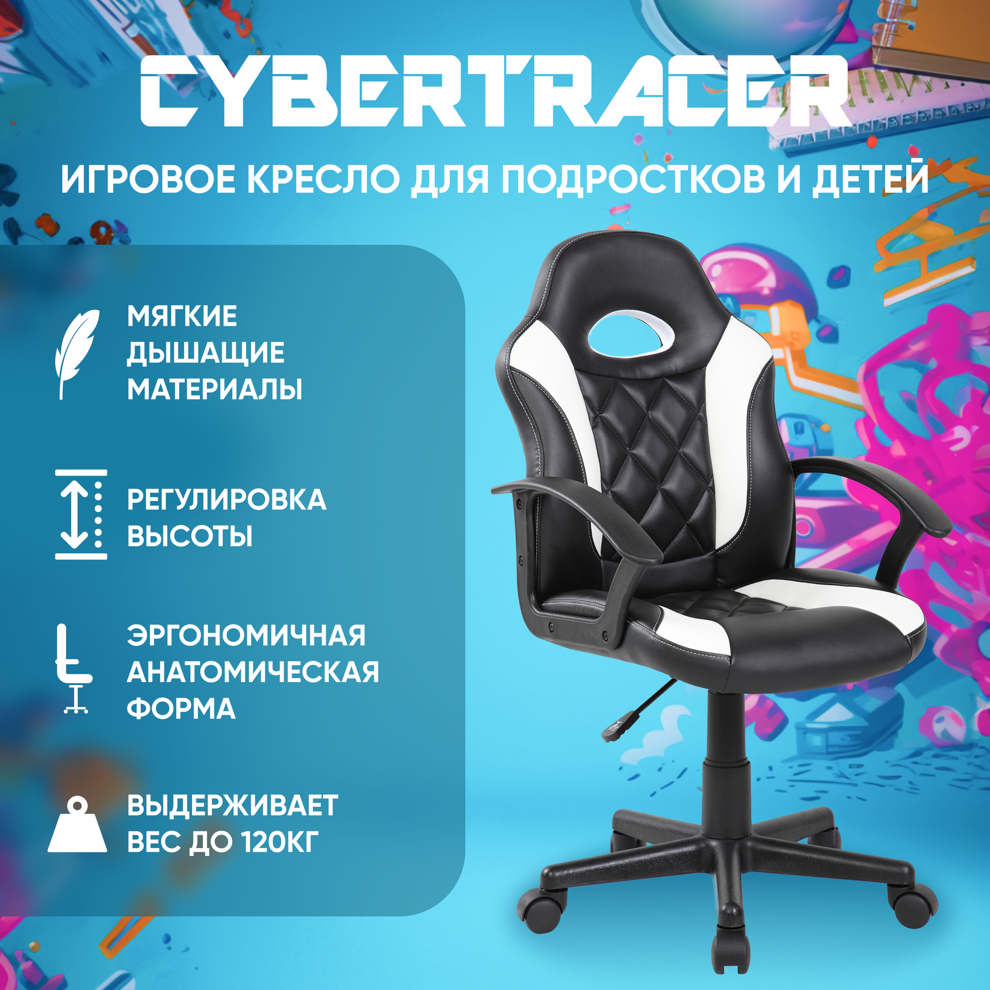 10 цен на Игровое компьютерное кресло для детей и подростков CYBERTRACER черно-белое