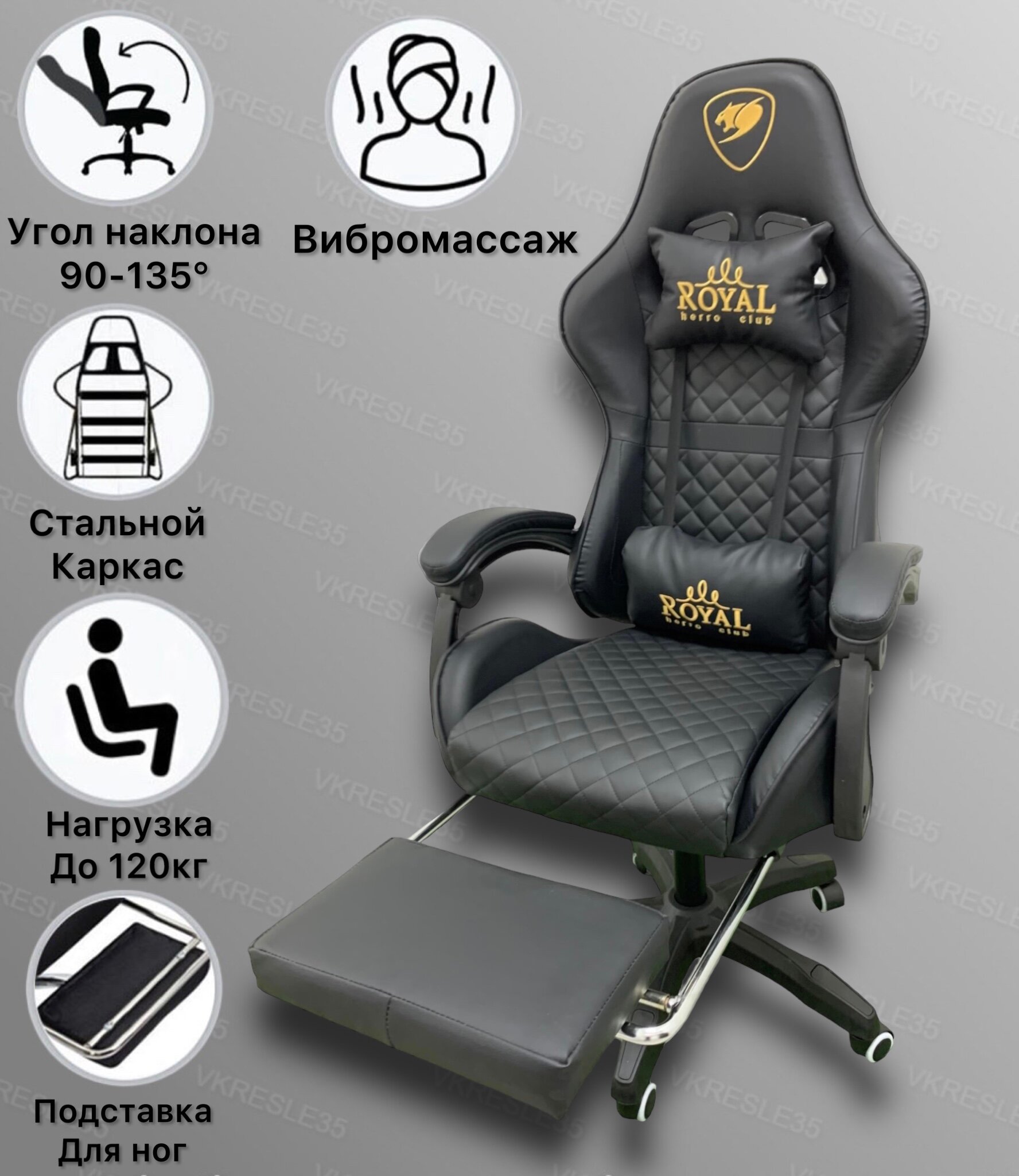 Игровое Компьютерное Кресло с Вибромассажем, Черный, с подставкой для ног информация: