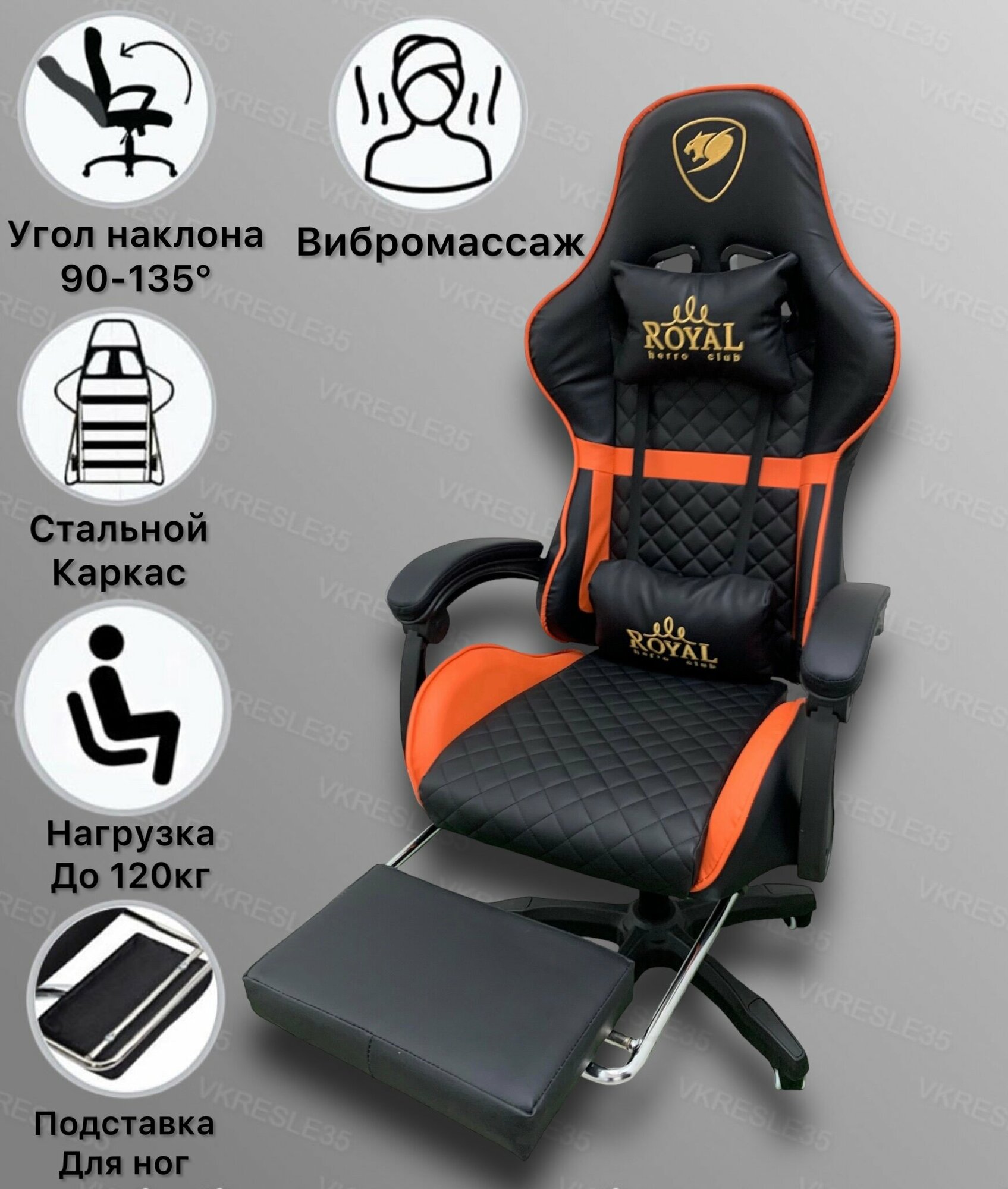 Игровое Компьютерное Кресло с Вибромассажем, Черно-Оранжевый, с подставкой для ног информация:
