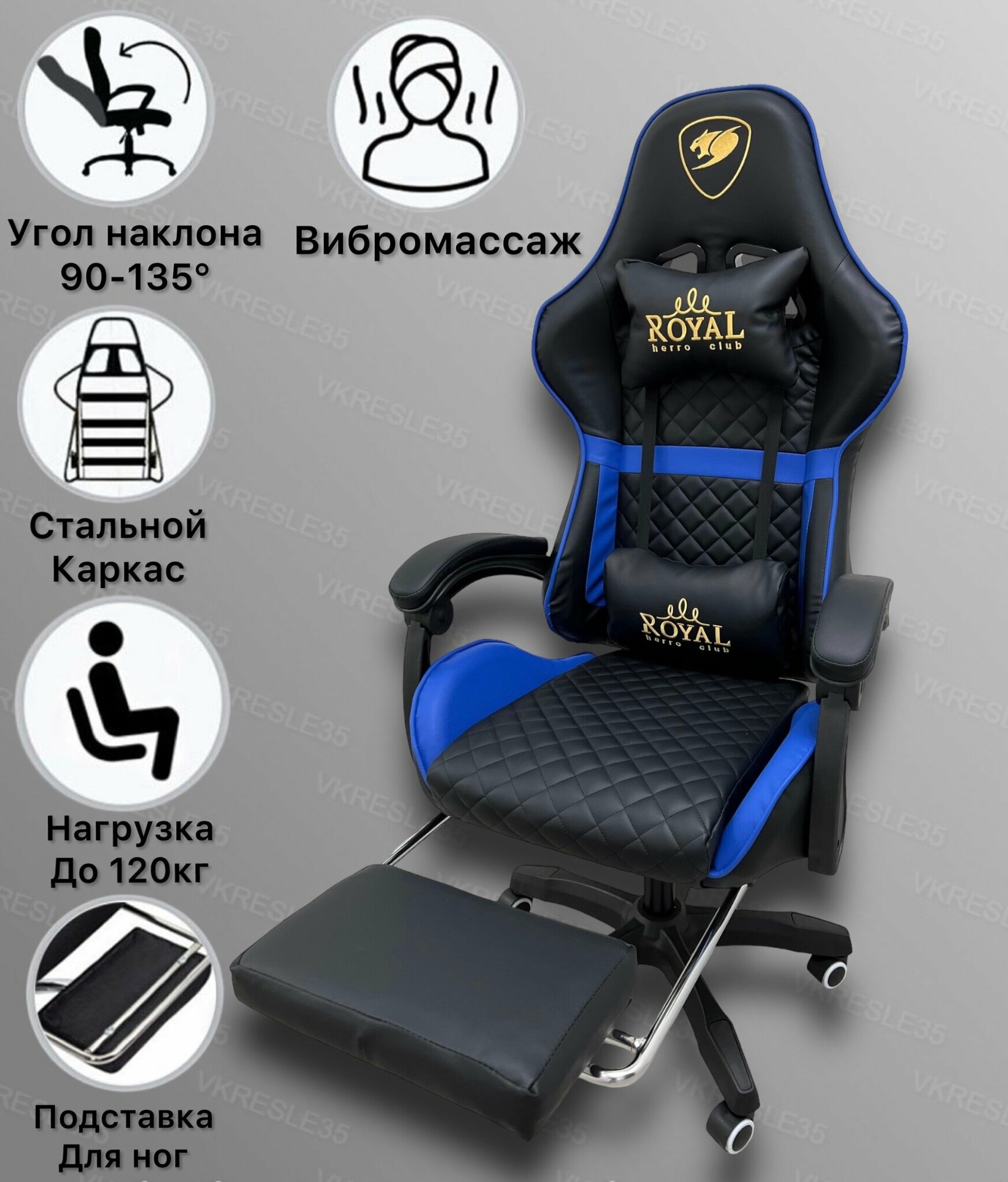 Игровое Компьютерное Кресло с Вибромассажем, Черно-Синий, с подставкой для ног информация: