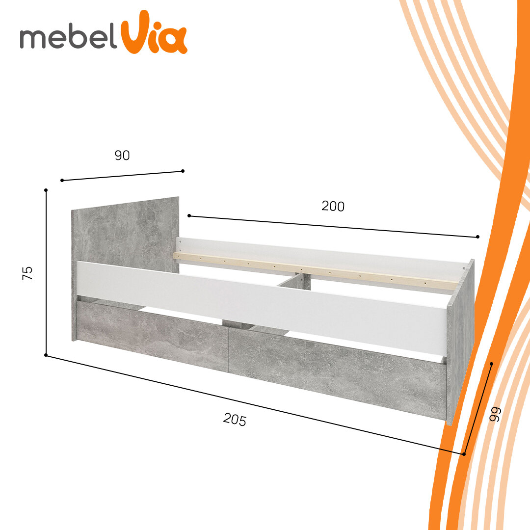 Кровать Скайс ящиками белый текстурный, 140х200 см