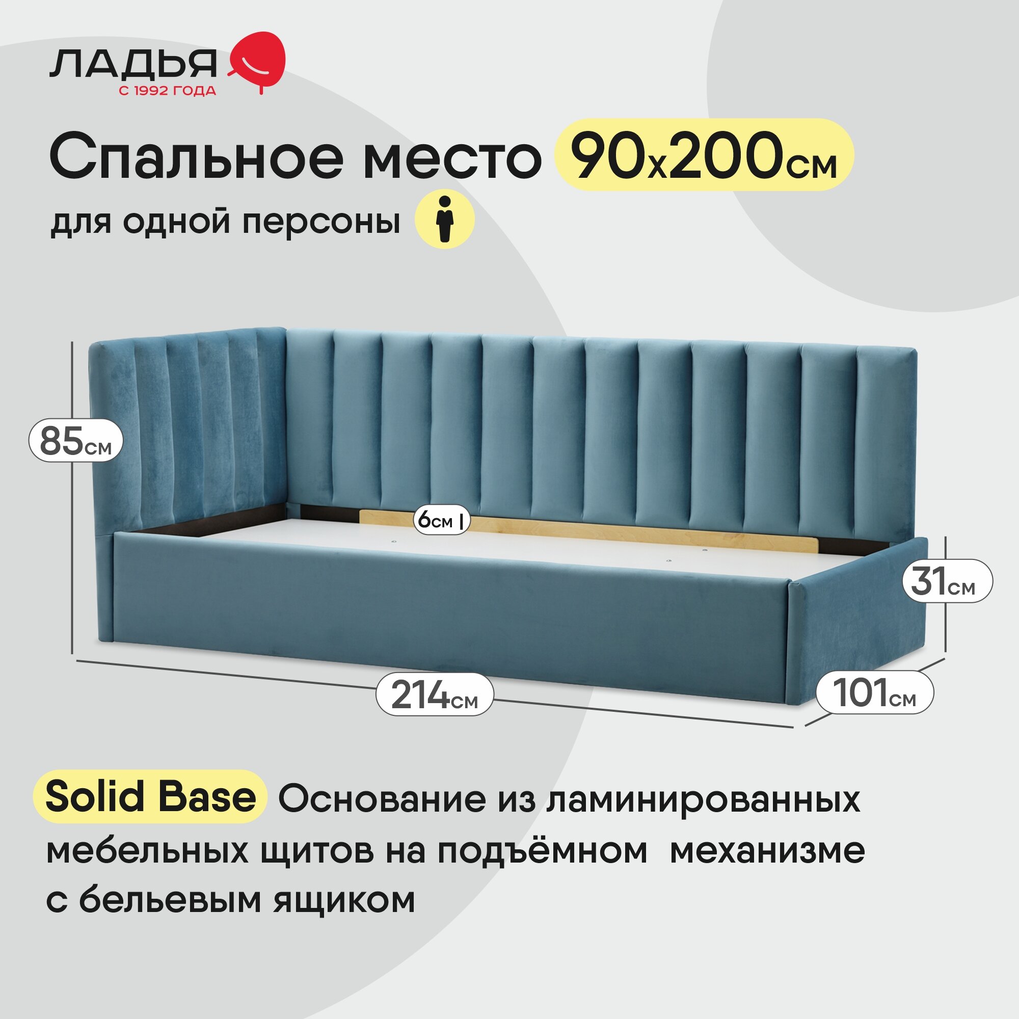 Мягкий диван кровать детская/ подростковая софа с подъемным механизмом асти 90х200 правая