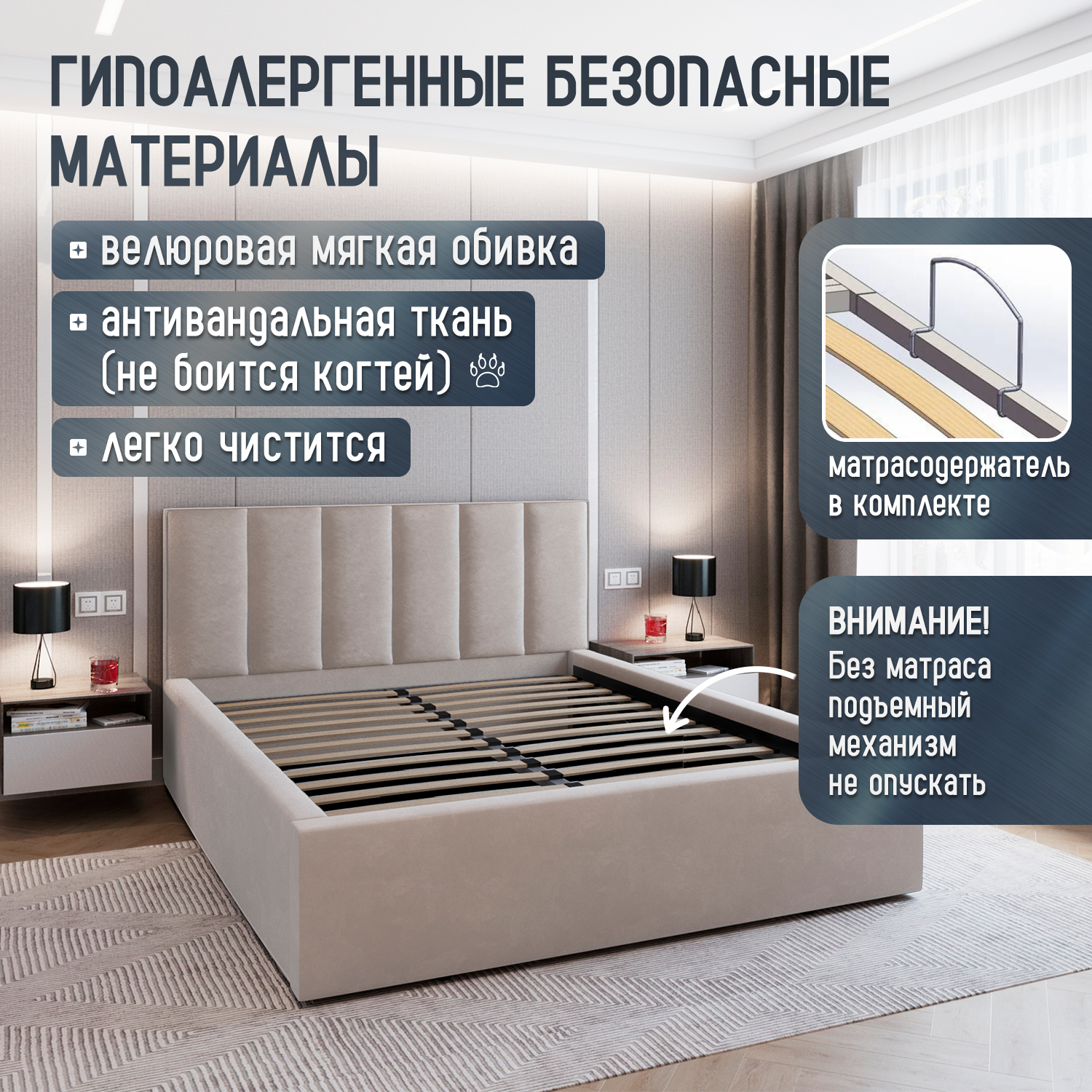 Кровать премиум 160 х 200 с подъемным механизмом, двуспальная с мягким изголовьем информация: