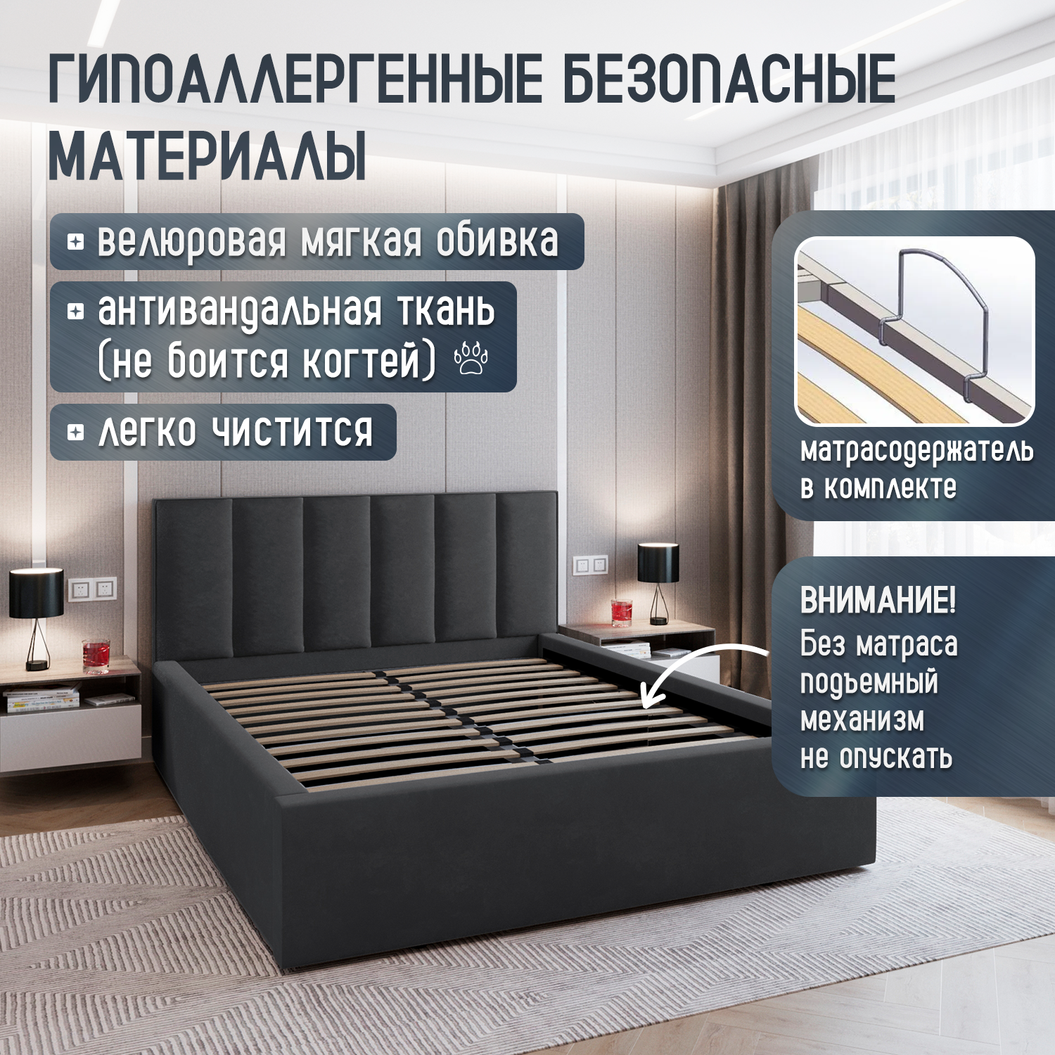 Кровать премиальная 160 х 200 с подъемным механизмом, двуспальная с мягким изголовьем информация: