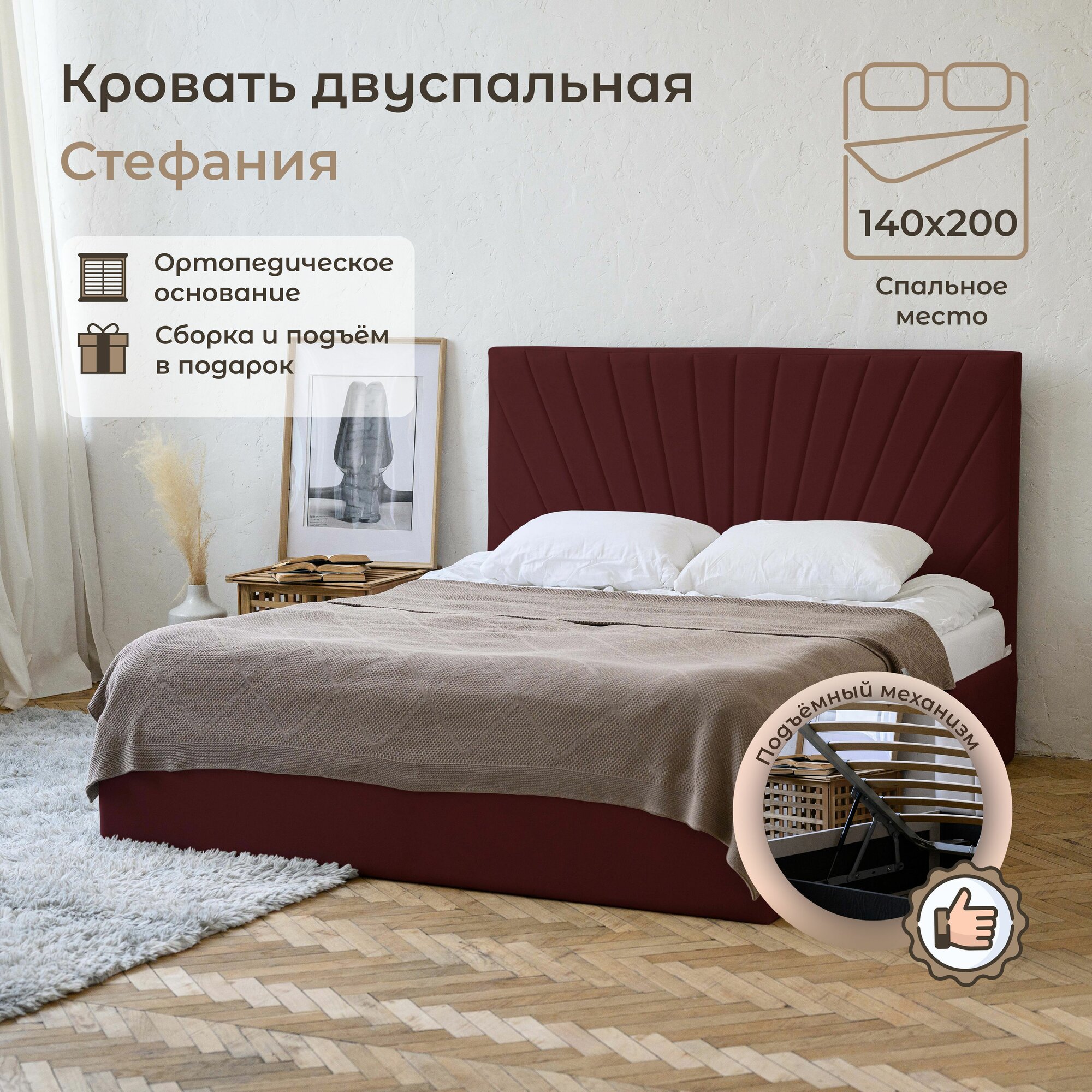 10 цен на Кровать 140х200 c подъемным механизмом и бельевым ящиком Стефания бордовый
