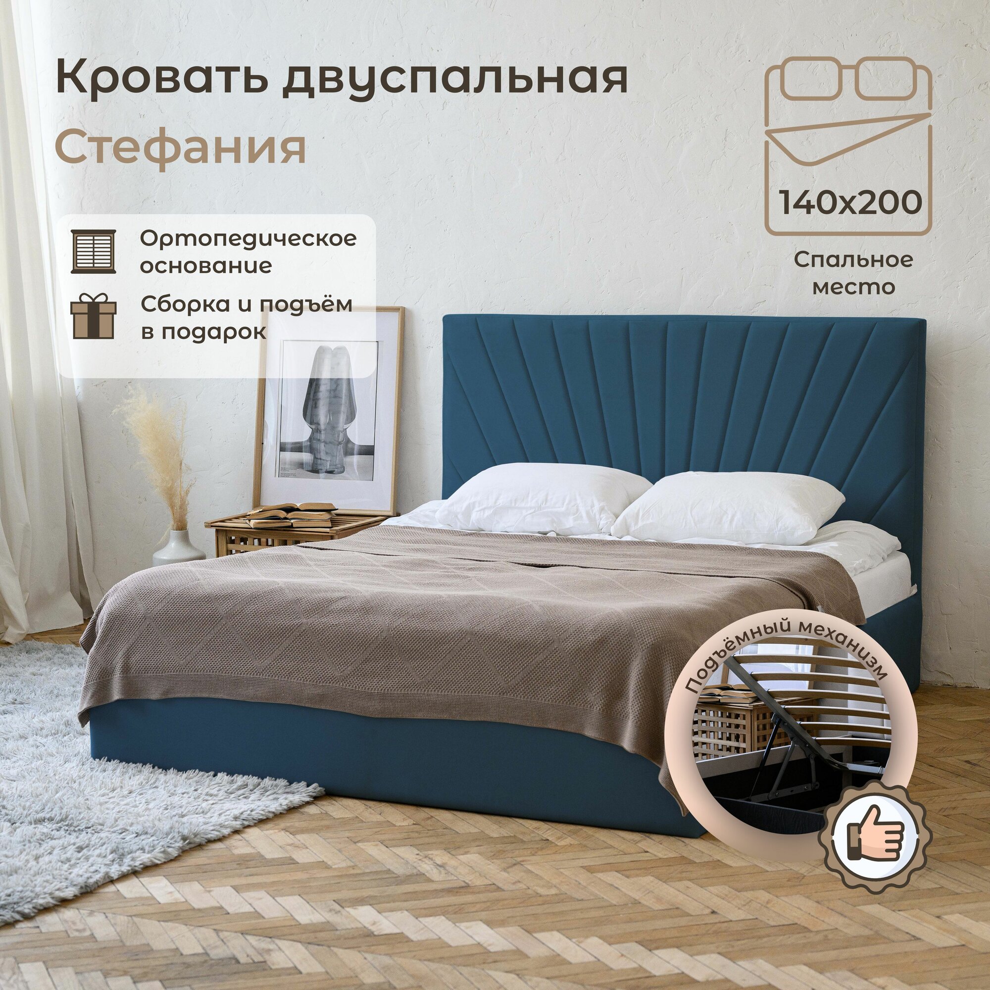 Кровать 140х200 c подъемным механизмом и бельевым ящиком Стефания синий информация: