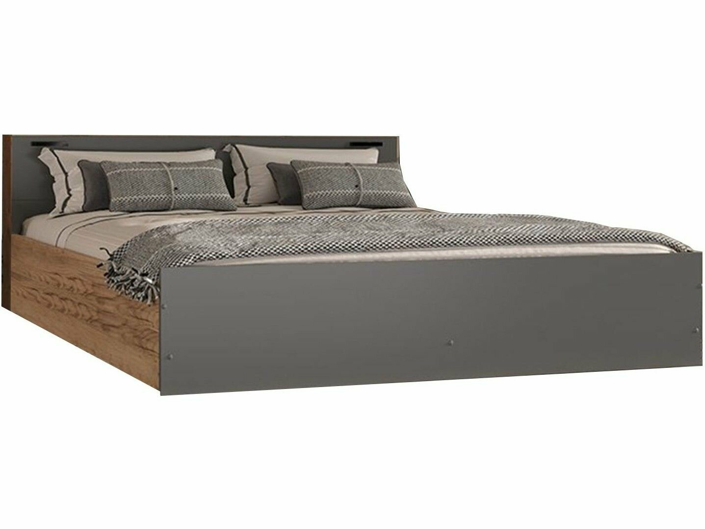 Двуспальная кровать Бася 1,6м (Графит/Дуб крафт)