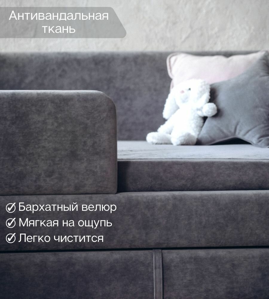 Детский диван-кровать 90*180 см DREAM темно-серый c выдвижным спальным местом, защитным бортиком, матрасом и чехлом, кровать детская от 3х лет информация: