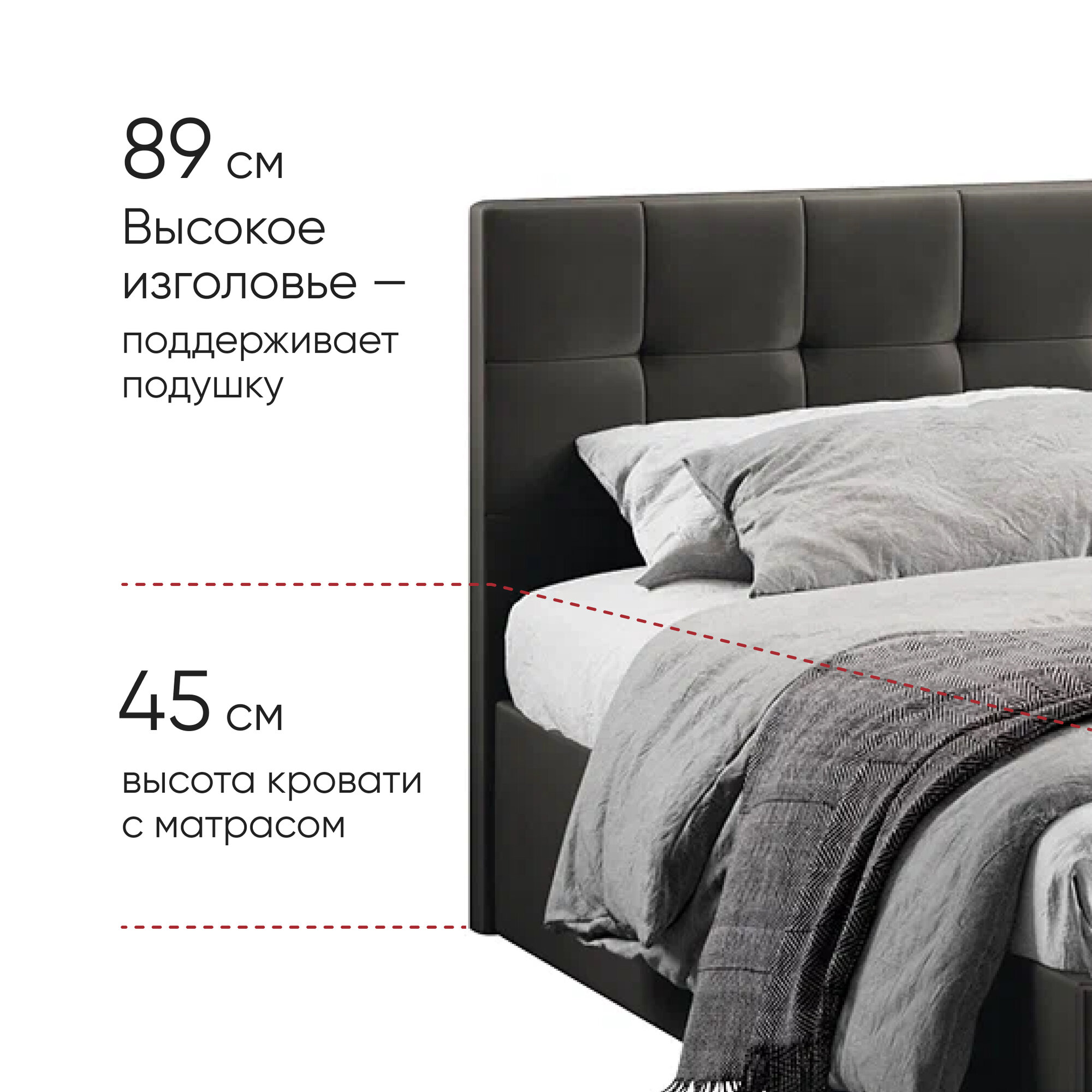 10 цен на Кровать Эмма 160х200 с подъемным механизмом и местом для хранения Темно-серый