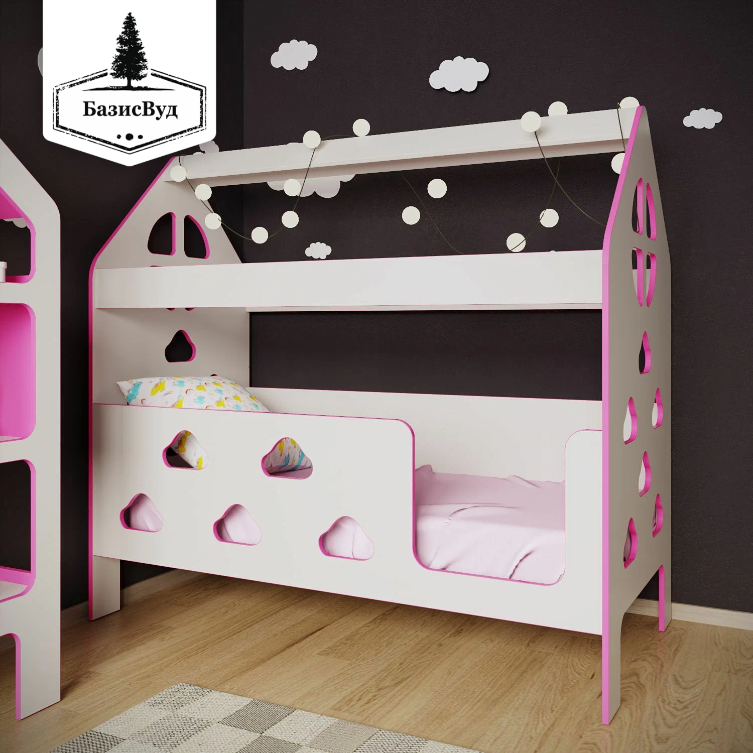 10 цен на Кровать детская с бортиком под матрас 160х80, кровать-домик "Облачка", БазисВуд, вход справа, цвет розовый