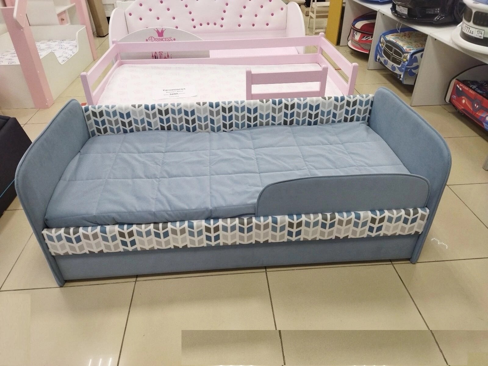 Детский диван-кровать Майя 90х200 см морская волна с выкатным ящиком и бортиком Кровать детская от 3х лет Без матраса