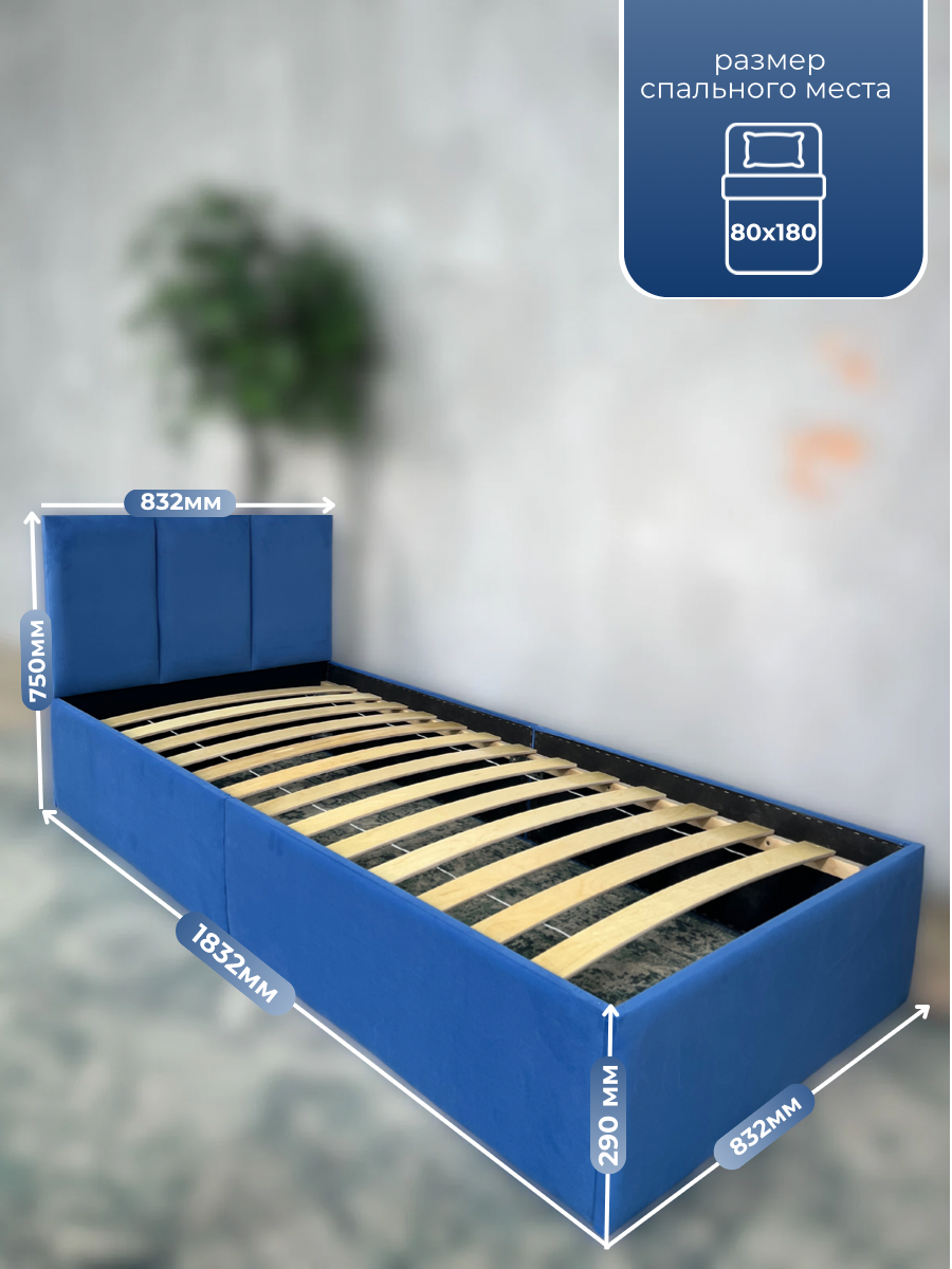 Детская кровать с мягкой обивкой синяя, размер 80х180 информация: