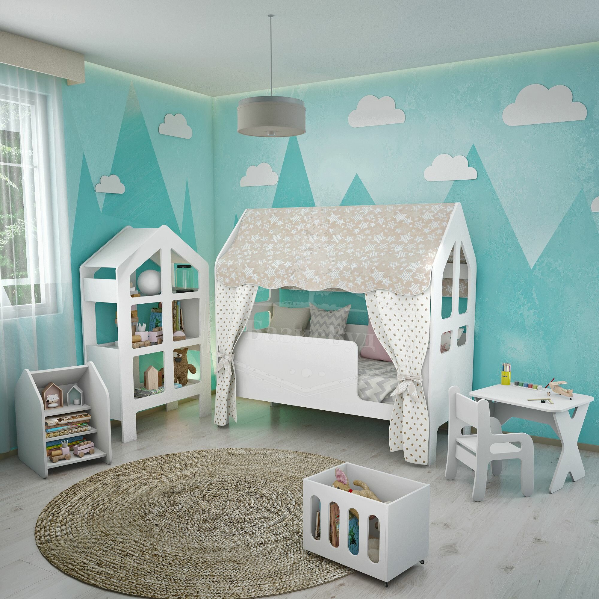 Кровать-домик, Кровать детская с бортиком под матрас 160х80, БазисВуд "Сладкий сон" с текстилем (бирюзовый с жирафиками), вход справа 19 990 ₽