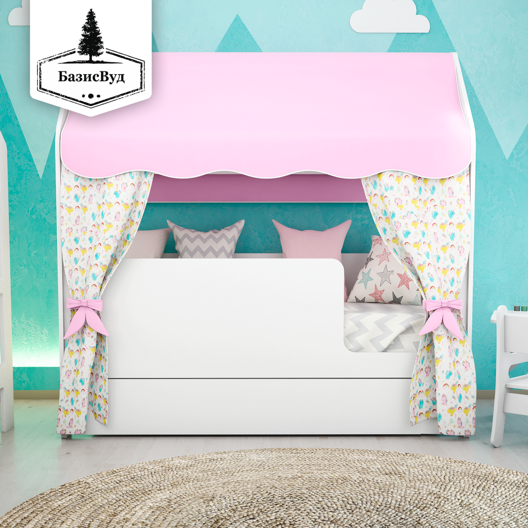 Отзывы на Кровать-домик, Кровать детская с бортиком под матрас 160х80, БазисВуд "Сладкий сон" с текстилем (розовый с единорогами) и ящиком, вход справа