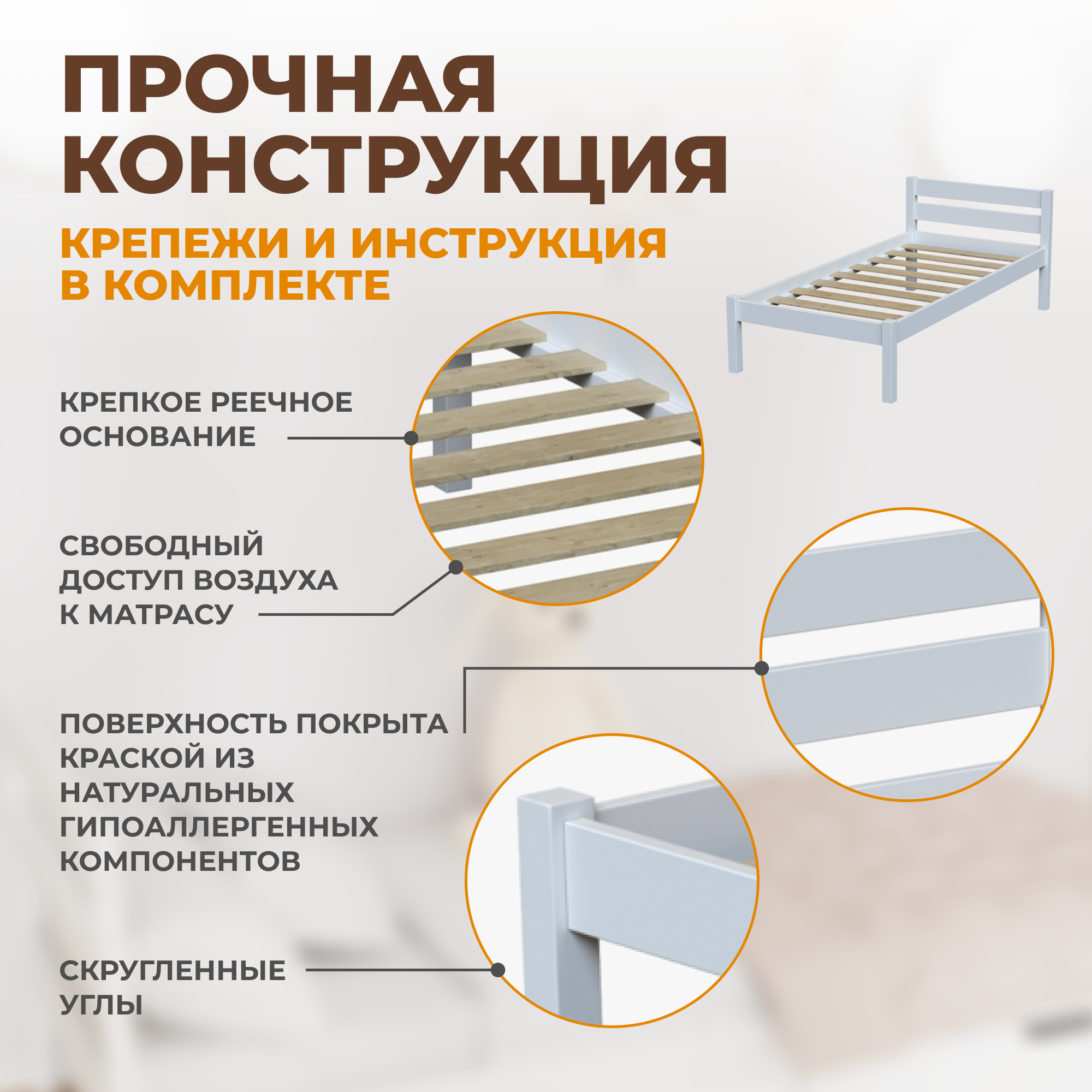 | Особенности | для детей, основание под матрас, с бортиком, с изножьем |