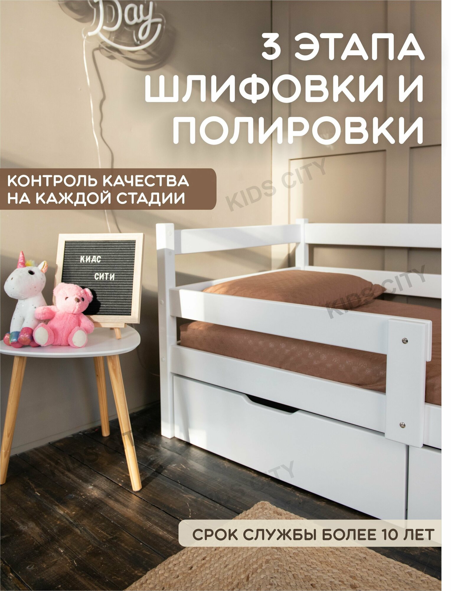 | Особенности | для детей, основание под матрас, с бортиком, с изножьем |